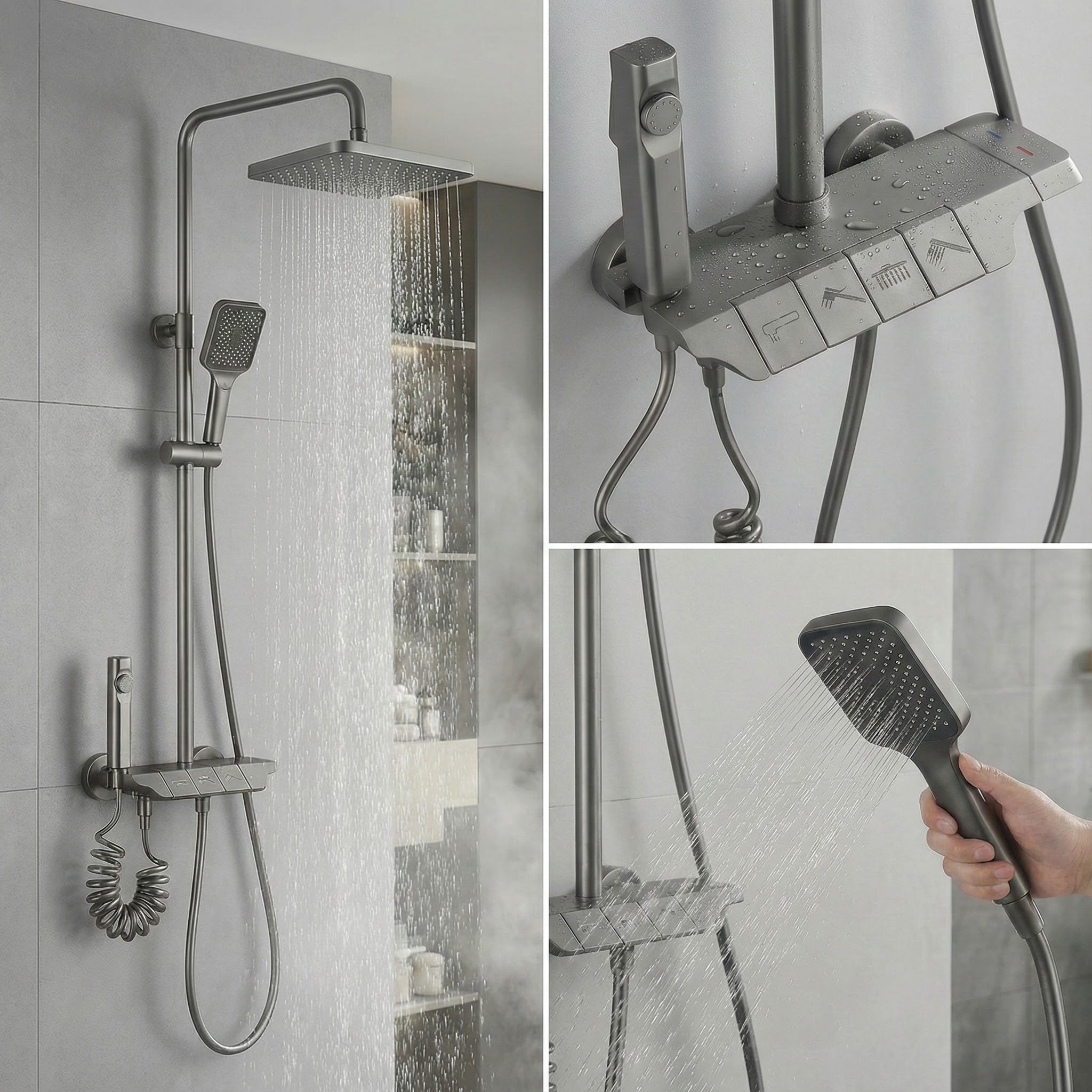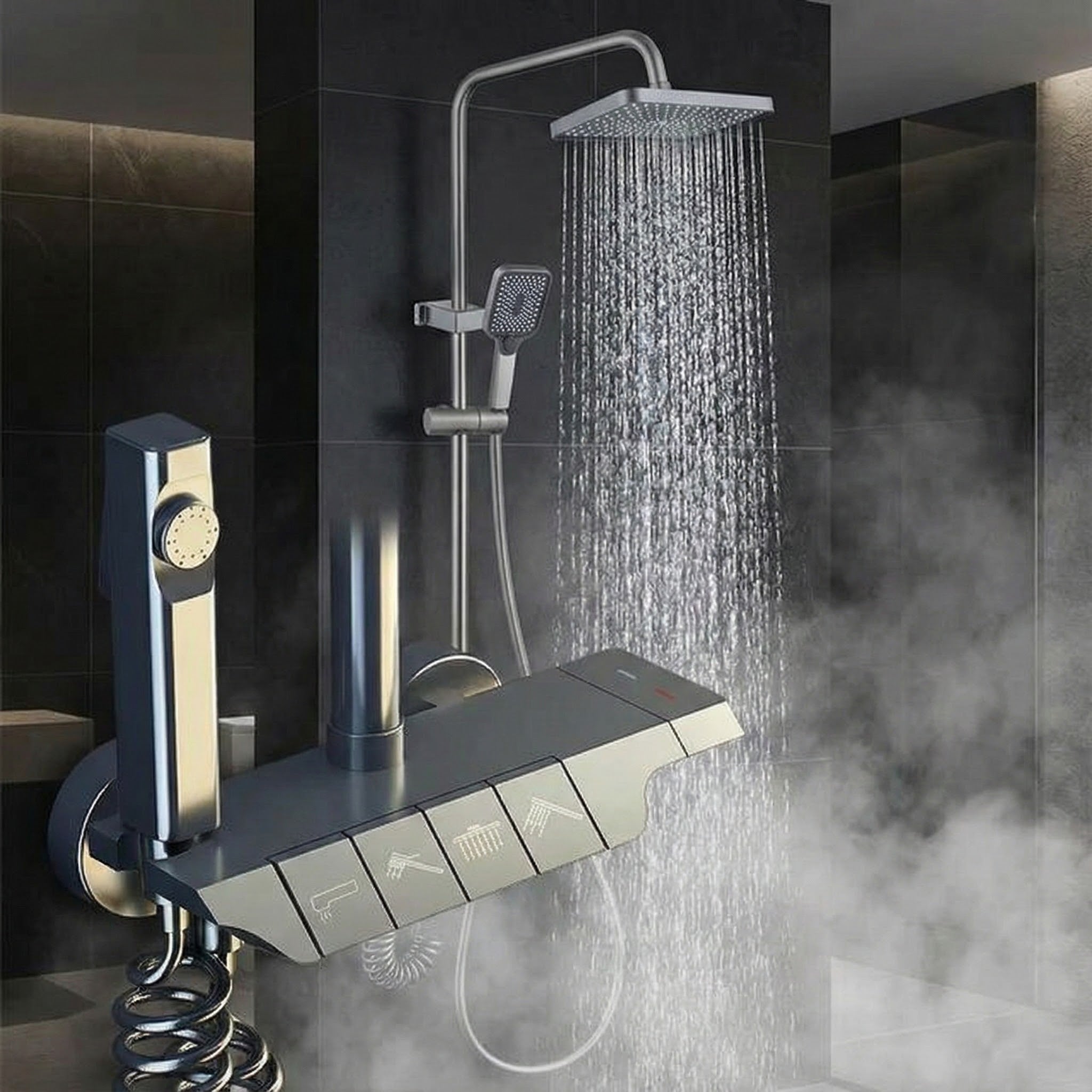 🎹 Mekanik Piyano Tuşları: Her bir su çıkışı (Tepe duşu, el duşu, alt musluk ve tabanca) için özel tasarlanmış, bas-aç mantığıyla çalışan dayanıklı mekanik tuşlar. Karışıklığa son verin, neye basarsanız su oradan akar.